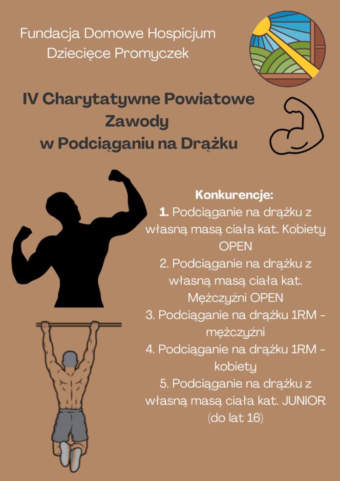 Domowe Hospicjum Dziecięce „Promyczek” ogłasza, że 1 września 2024 r. odbędą się IV Charytatywne Powiatowe Zawody w Podciąganiu na Drążku! Warto pomagać!