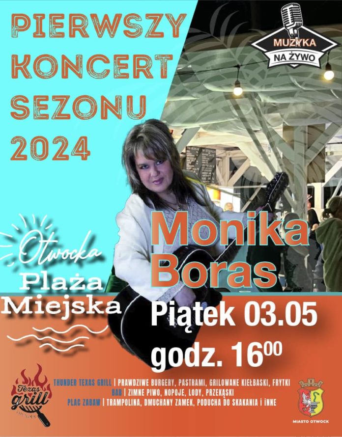 3 maja o godzinie 16:00 na plaży miejskiej w Otwocku odbędzie się Pierwszy koncert sezonu 2024. Przed publicznością wystąpi Monika Boras!