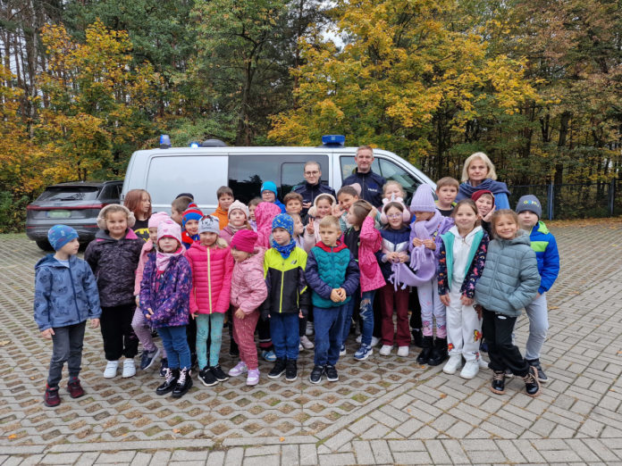 Dzielnicowi opowiedzieli o roli policji w systemie bezpieczeństwa oraz zaprezentowali wyposażenie, które jest używane w codziennej służbie. Dzieci chętnie zadawały pytania na temat zagrożeń, z jakimi mogą spotkać się w drodze do szkoły.